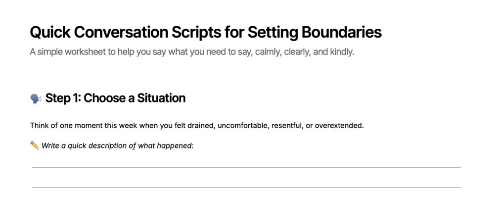 You'll get a simple worksheet to help you say what you need to say, calmly, clearly, and kindly.