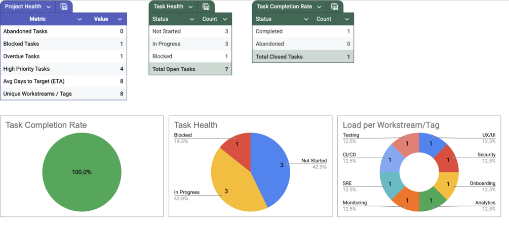 • A Project Health Dashboard so you can guarantee you're making progress,